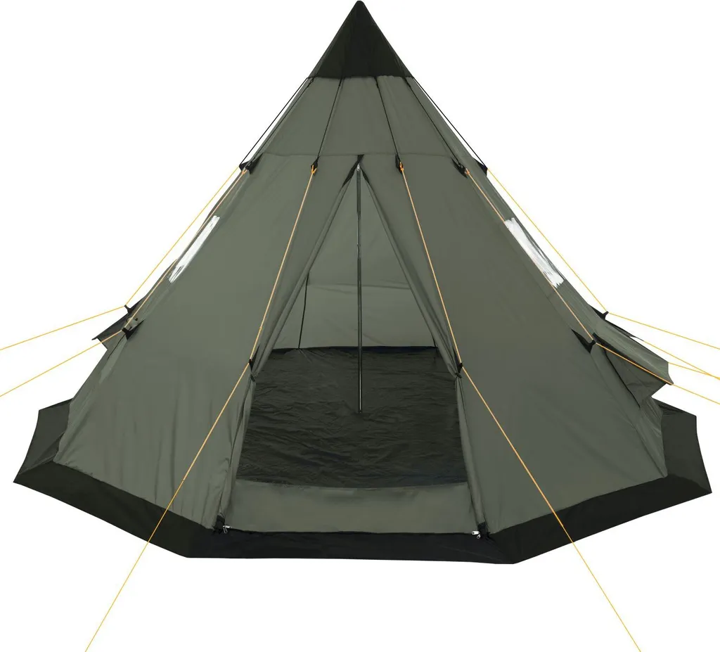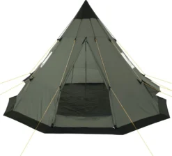 Das Tipi Zelt ist ideal für 4 Personen und bietet eine optimale Stehhöhe. Dies ist ein für jedes Wetter und 4 Jahreszeiten geeignetes Firstzelt.