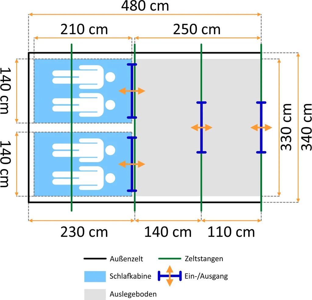 – Zelttyp: Tunnelzelt