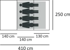 – Ideale Kombination aus Tunnelzelt und Vorraum. Jede Menge Platz zum Unterbringen von sperrigen Artikeln, wie Kühlbox und Campingmöbeln