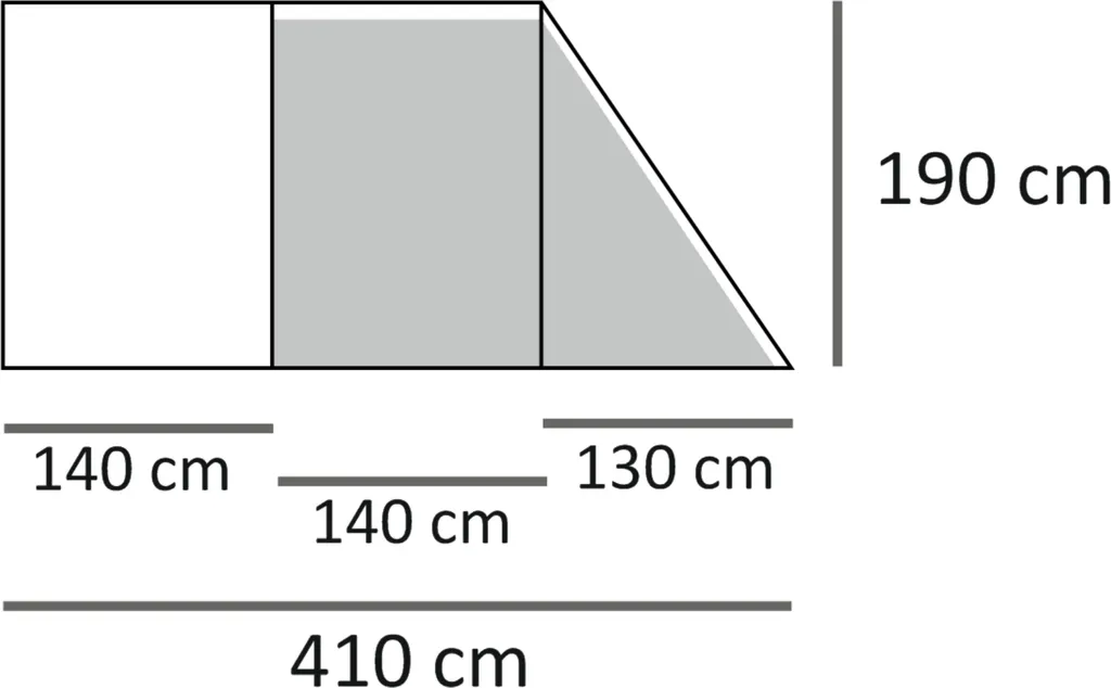 – Außenmaß: ca. (L) 410 cm x (B) 250 cm x (H) 190 cm