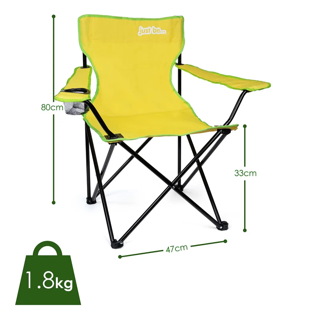Der Campingstuhl von just be… ist ein leichter, klapp- und tragbarer Stuhl. Er ist ideal für Festivals, Camping-, Strand- und Angelausflüge, oder einfach um gemütlich im eigenen Garten zu sitzen.