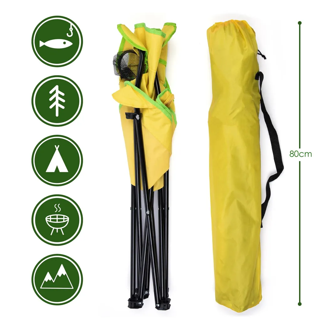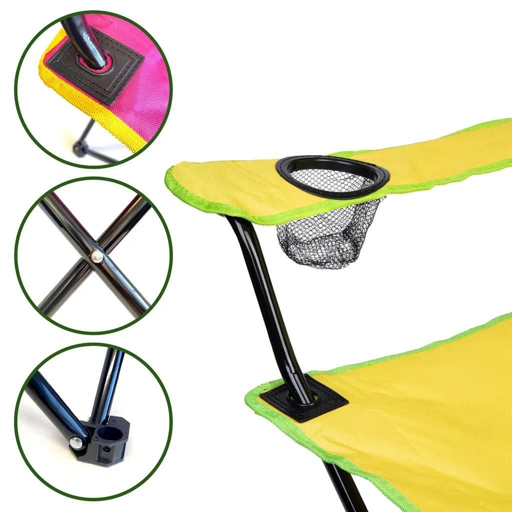 Der leichte röhrenförmige Rahmen mit einem Gewicht von nur 1,8 kg und einem einfachen Klappmechanismus macht diesen Stuhl äußerst mobil und im flachen eingeklappten Zustand ist er außerdem einfach zu lagern. Der abwischbare Polyesterstoff und die starke Befestigung durch Rückstich unterstützen den Stuhl zusätzlich und erhöhen seine Lebensdauer. Der Stuhl ist mit einem Getränkehalternetz für Flaschen, Dosen und Behälter ausgestattet und wird mit einem farblich passenden Kordelzugbeutel mit Schulterschlaufe geliefert.