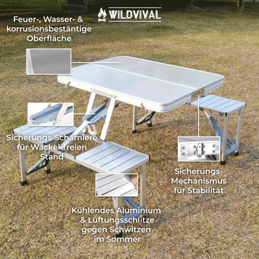 Stabilität für 4 Erwachsene durch hochwertiges Material und durchdachtes Design statt wackelige und kurzlebige Camping-Tische