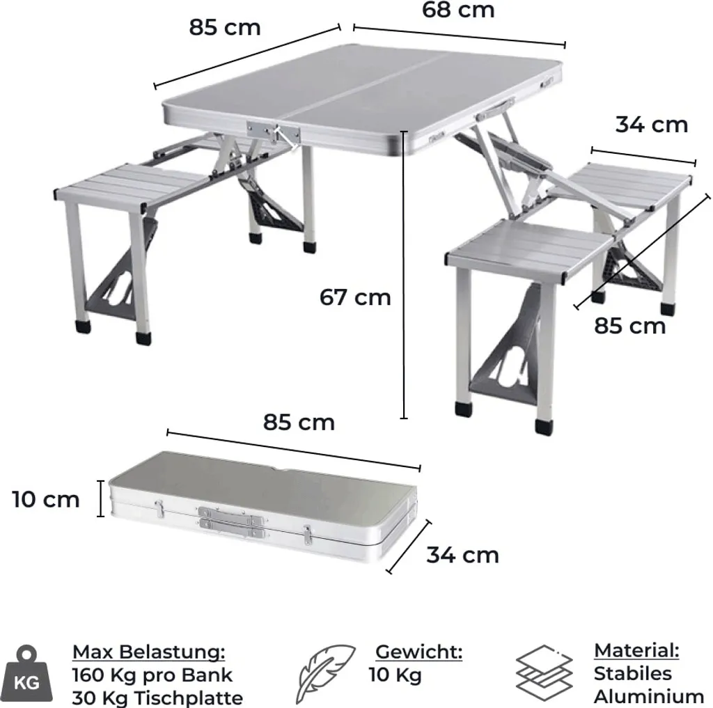 - Wenn du es von herkömmlichen Camping-Tische leid bist, bei jeder Bewegung Gefahr zu laufen, gleich auf dem Boden zu sitzen, dann hat das jetzt ein Ende! Durch ein durchdachtes Design, die Verwendung von hochwertigem Aluminium sowie Sicherungs-Scharnieren, kannst du endlich ein wackelfreies und sicheres Sitzerlebnis genießen.