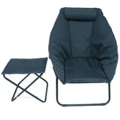 Stuhl und Hocker sind Platz sparend zusammenklappbar.