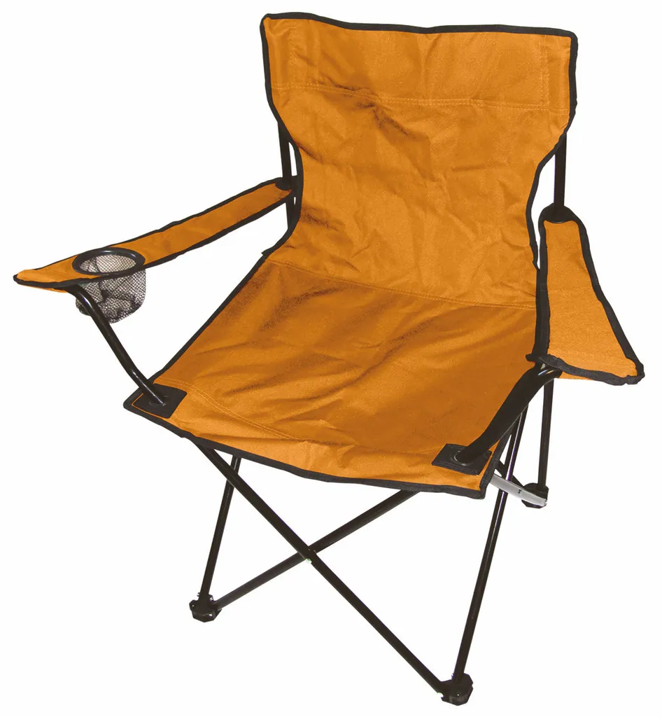 Klappbarer Campingstuhl in orange mit Getränkehalter und Tragetasche