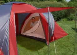 Eine Wassersäule von 1500 mm erscheint sehr hoch. Sie sollten jedoch beachten, dass starker Wind den Regen mit einem hohen Druck gegen die Zeltwand drückt. Hier ist die hohe Wassersäule sehr vorteilhaft. Wir empfehlen darüber hinaus die Nähte regelmäßig zu prüfen. Dank dem schnellen und unkomplizierten Aufbau verlieren Sie keine Zeit und können ihr mobiles Heim innerhalb kürzester Zeit beziehen. Das separat verschließbare Moskitonetz am Eingang schützt Sie zuverlässig vor ungebetenen Besuchern, so dass Ihrer ungestörten Nachtruhe nichts im Wege steht. Das Dach am Zelteingang sowie die Lüftungsöffnung am Zeltdach sorgen für zusätzlichen Platz und Komfort.