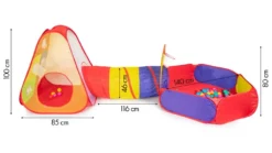 3-in-1-Spielzelt: Das Kinderzelt enthält 1 Tunnel, 1 Tipi mit Reifen und Zielwand (3 Klettbälle enthalten), 1 Ballpool (100 Bälle). Sie können alle zusammen, in einem 2- oder 3-teiligen Set kombiniert oder einzeln verwendet werden, ganz wie Sie es wünschen. Der Raum ist groß genug für 3 oder 4 Kinder zum Spielen, vor allem für Kleinkinder, die sich stundenlang vergnügen. Wird von Kindern ab 3 Jahren verwendet.
