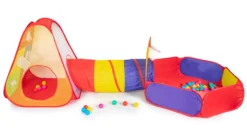 Stundenlanger Spielspaß – Dieses farbenfrohe Burgzelt schafft einen lustigen Spielbereich, in dem Ihr Kind krabbeln und spielen kann. Kinderspielzelte und -tunnel unterstützen die Entwicklung der Arm- und Beinmuskulatur, der Grobmotorik und fördern Kreativität und Fantasie. Das Spielhauszelt ist für Kinder im Alter von 3-8 Jahren geeignet. Bitte unter Aufsicht von Erwachsenen verwenden.