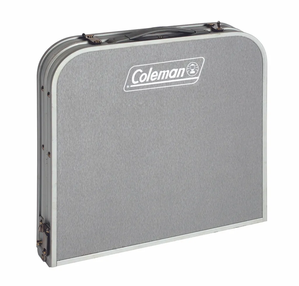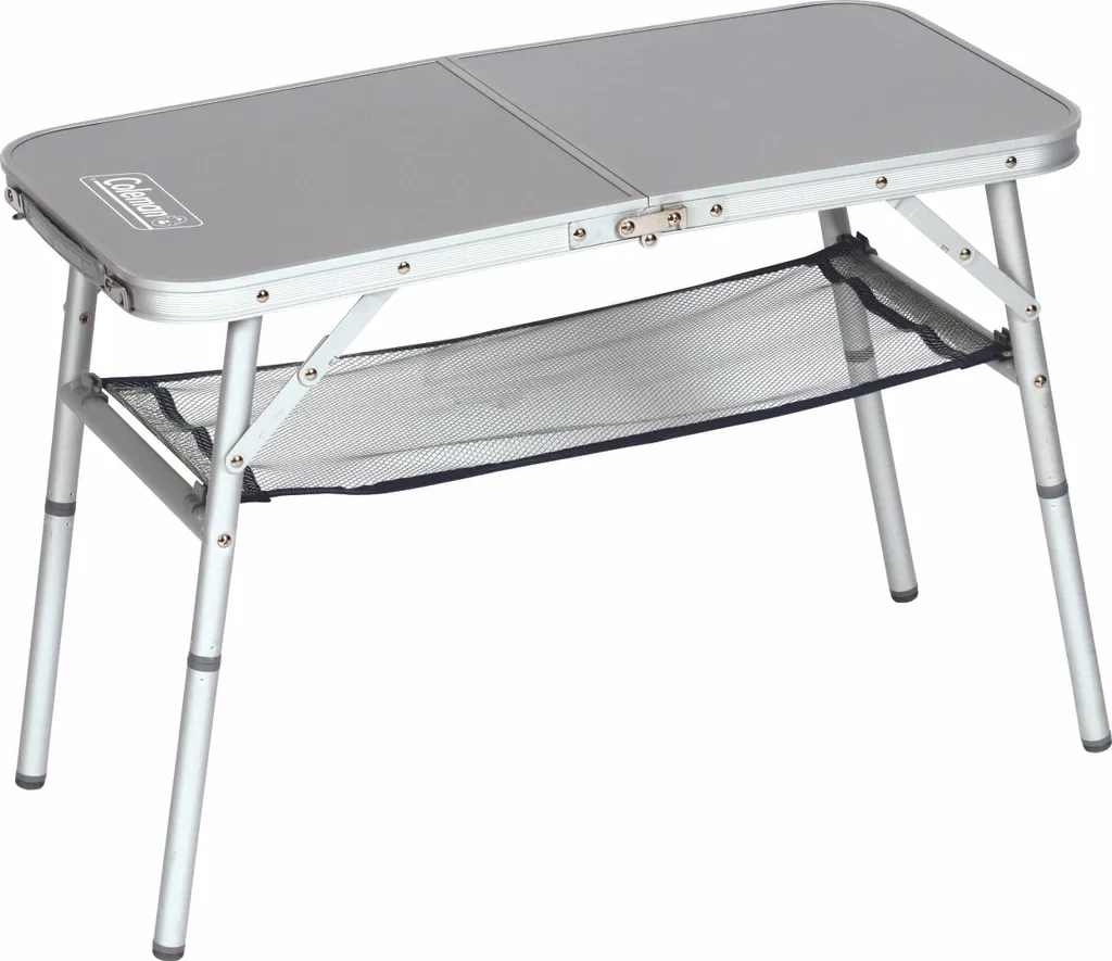 Coleman Tisch Mini CampKompakt zusammenlegbarer Tisch für zwei Personen. In zwei Höhen einsetzbar und mit Niveauregulierung an jedem Fuß für unebenes Terrain. Mit integriertem Tragegriff. Gut zu verstauen und schön gemachte Unterbringung der Beine (abschraubbar). Für eine Belastung bis ca. 30 kg. Ablage unter dem Tisch aus Netzgewebe.