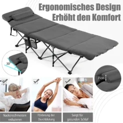 Unser Feldbett ist 67 cm breit, sodass sich ein Erwachsener bequem darauf ausstrecken kann. Es ist nicht nur die beste Wahl für Ihren Ausflug ins Freie, Camping, sondern auch als Liege am Pool, am Strand, um die Sonne zu genießen, aber auch als perfektes temporäres Bett für die Unterhaltung von Gästen.