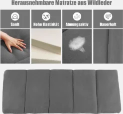 Und wir bieten eine herausnehmbare Matratze und ein Kissen, die sehr bequem sind und Ihnen ein großartiges Schlaferlebnis bieten. Außerdem gibt es eine eingebaute Aufbewahrungstasche zum Aufbewahren von Büchern, Telefonen, Sonnenbrillen usw.