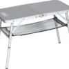 Aus pulverbeschichtetem Stahl und atmungsaktivem Stoff gefertigt ist der Stuhl langlebig, rostbeständig und robust. Er kann bis zu 150 kg tragen hat einen Kippschutz, der zur Stabilität beiträgt.