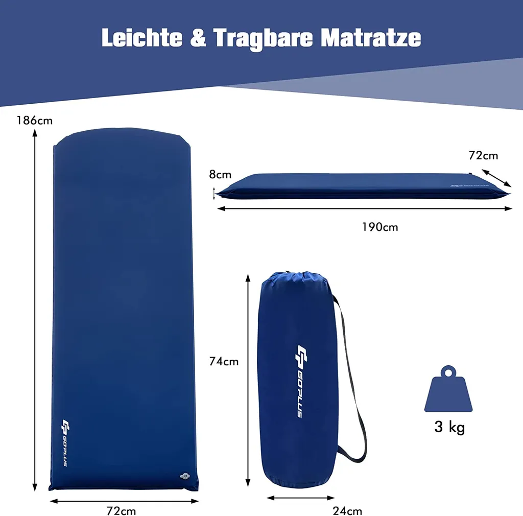 Die 190 x 72 x 8 cm große Isomatte bietet Platz für einen Erwachsenen zum Schlafen und passt sich einer bequemen Schlafposition an, perfekt zum Mitnehmen für Camping, Reisen oder Wandern, um Kälte durch Kontakt mit nassem Boden zu vermeiden. oder als Ersatzmatratze für Ihr Campingbett.