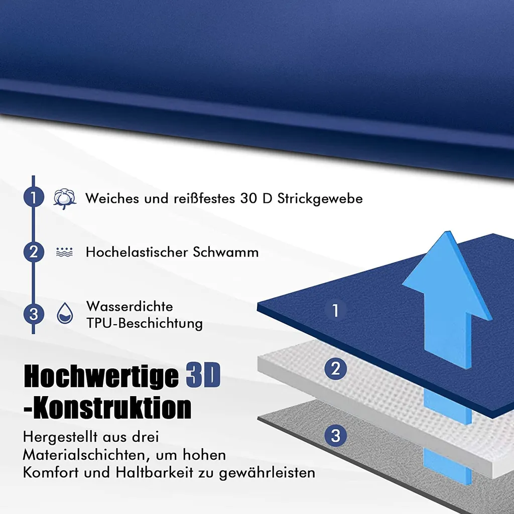 Diese Campingmatratze verfügt über eine hochwertige 3D-Konstruktion, um Ihnen hervorragenden Komfort zu bieten. Das abriebfeste und hautfreundliche 30D-Gestrick ist mit einer wasserdichten TPU-Beschichtung versehen und mit hochelastischem Schaum gefüllt. Darüber hinaus hat diese Isomatte einen Wärmewiderstand von 9,5, sodass sie Sie in kalten Winternächten warm halten kann.