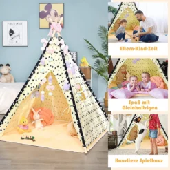 Dieses Tipi ist ein idealer Begleiter in der Freizeit von Kindern. Sie können es zum Spielen, Lesen oder Schlafen nutzen. Beim Spielen wird durch die Anregung der Fantasie das kindliche Vorstellungsvermögen gefördert.