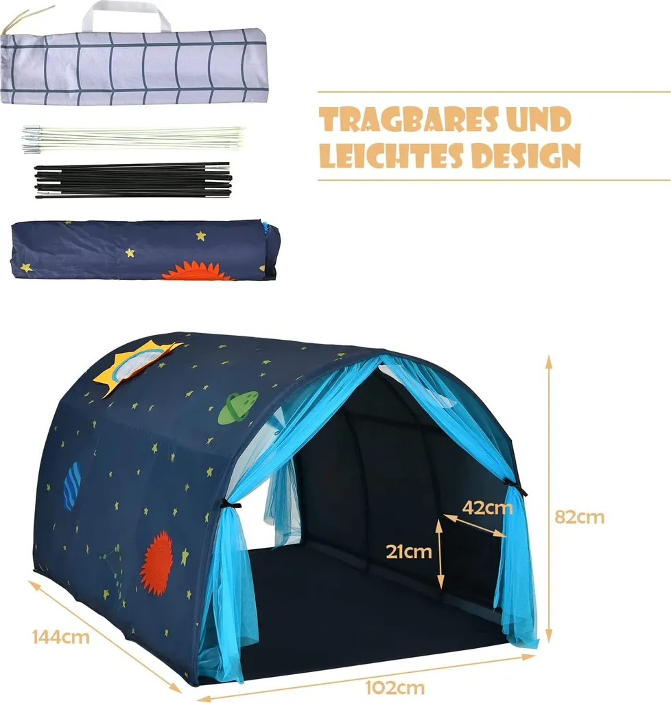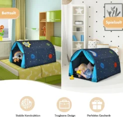 Dieses Spielzelt kann auf dem Bett oder auf dem Boden verwendet werden. Im Inneren wird Kindern viel Platz für verschiedensten Aktivitäten geboten. Sie können auch gemeinsam mit Freunden darin spielen.
