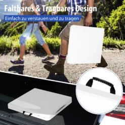 Dieser Campingtisch kann in zwei Hälften gefaltet werden, was nicht nur wenig Platz für eine einfache Aufbewahrung benötigt, sondern auch für einen bequemen Transport problemlos in den Kofferraum des Autos passt. Mit einem superleichten Gewicht von 7 kg und einem Tragegriff können Sie den Klapptisch außerdem problemlos nach draußen tragen.