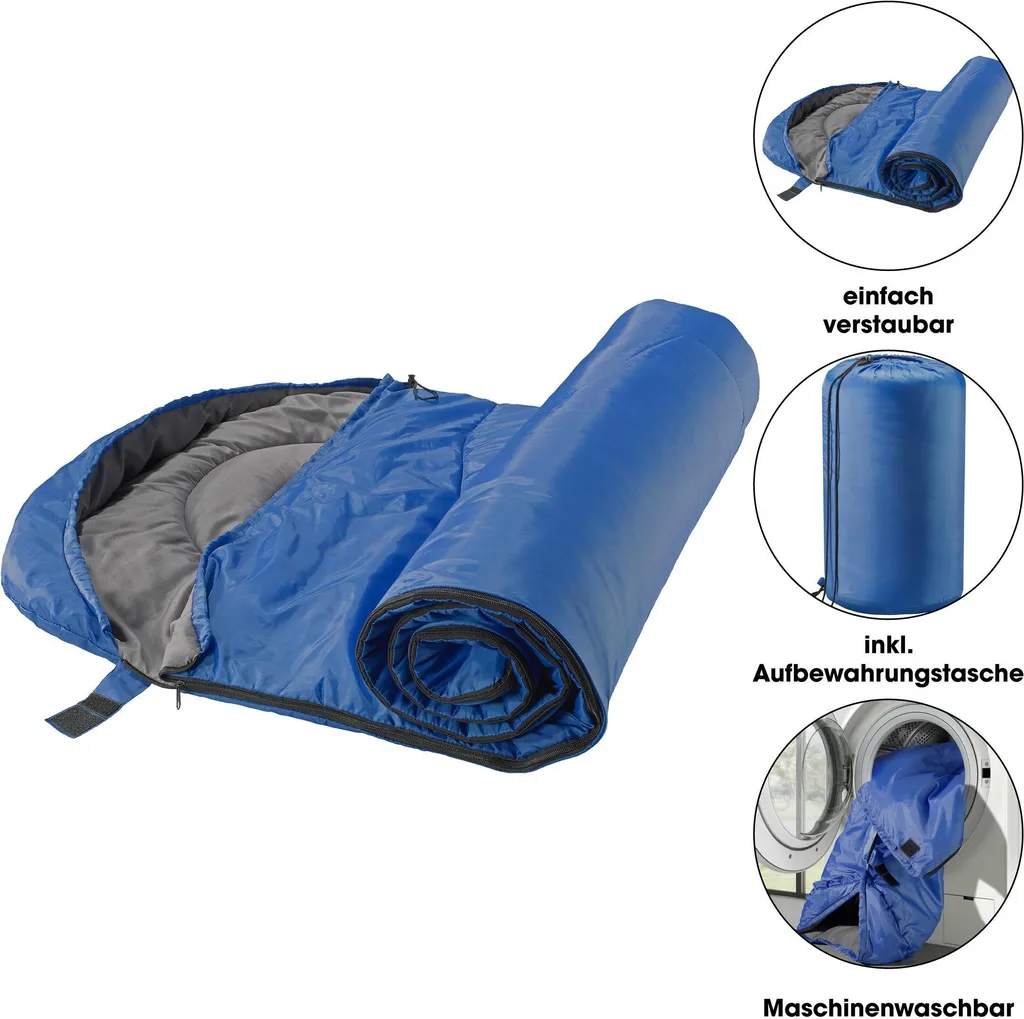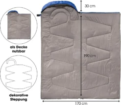 Die Campingdecke wird inklusive einem Packsack mit Kordel und Stopper geliefert und ist somit klein und handlich verstaubar. Die Komforttemperatur liegt bei ca. 12 Grad Celsius.