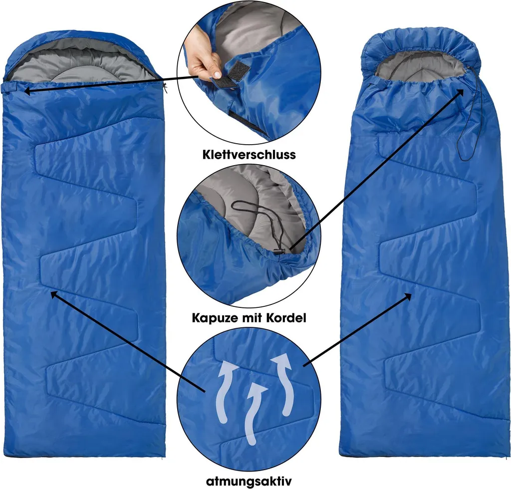 Unser atmungsaktiver Schlafsack ist aus 100% Polyester gefertigt und hat eine wasserabweisende Außenhülle. Die Innenhülle ist aus atmungsaktiver Mikrofaser. Der Kordelzug an der Kapuze sorgt für einen optimalen Wind- und Kälteschutz. Ein Klettverschluss verhindert, dass der Reißverschluss am Reiseschlafsack sich beim Schlafen selbständig öffnet. Durch den 2-Wege-Reißverschluss ist der Allzweckschlafsack aufklappbar und kann somit auch individuell als Schlafdecke verwendet werden. Egal ob für Indoor oder Outdoor, ideal für Hausgäste, Camping, Festival, Hütten, Kurzurlaube und Strand.