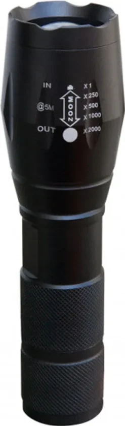 Zusätzlich verfügt die Taschenlampe über 5 Zoom-Einstellungen (x 1, x 250, x 500, x 1000, x 2000).