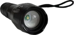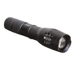 Mit dieser robusten und stabilen Militärtaschenlampe haben Sie einen handlichen und praktischen Begleiter für Unterwegs. Die kompakte und leichte Ausführung, dass stoßfeste Aluminiumgehäuse und die Wasserbeständigkeit sind nur einige Ausstattungsmerkmale. Neben einer Sichtbarkeit von bis zu 1000 Metern, verfügt die Stabtaschenlampe über fünf Einstellungen und eine Zoom Funktion. Sie haben die Möglichkeit zwischen den Einstellungen schwach, mittel, stark, Stroboskop und SOS zu wählen. Die SOS Funktion sendet Lichtimpulse in international gültigen Morsezeichen, so können Sie im Notfall auf sich aufmerksam machen. Die Helligkeit dieser Lampe übertrifft jede normale Taschenlampe, der Hersteller gibt dies mit einer bis zu 22 fachen Stärke an.