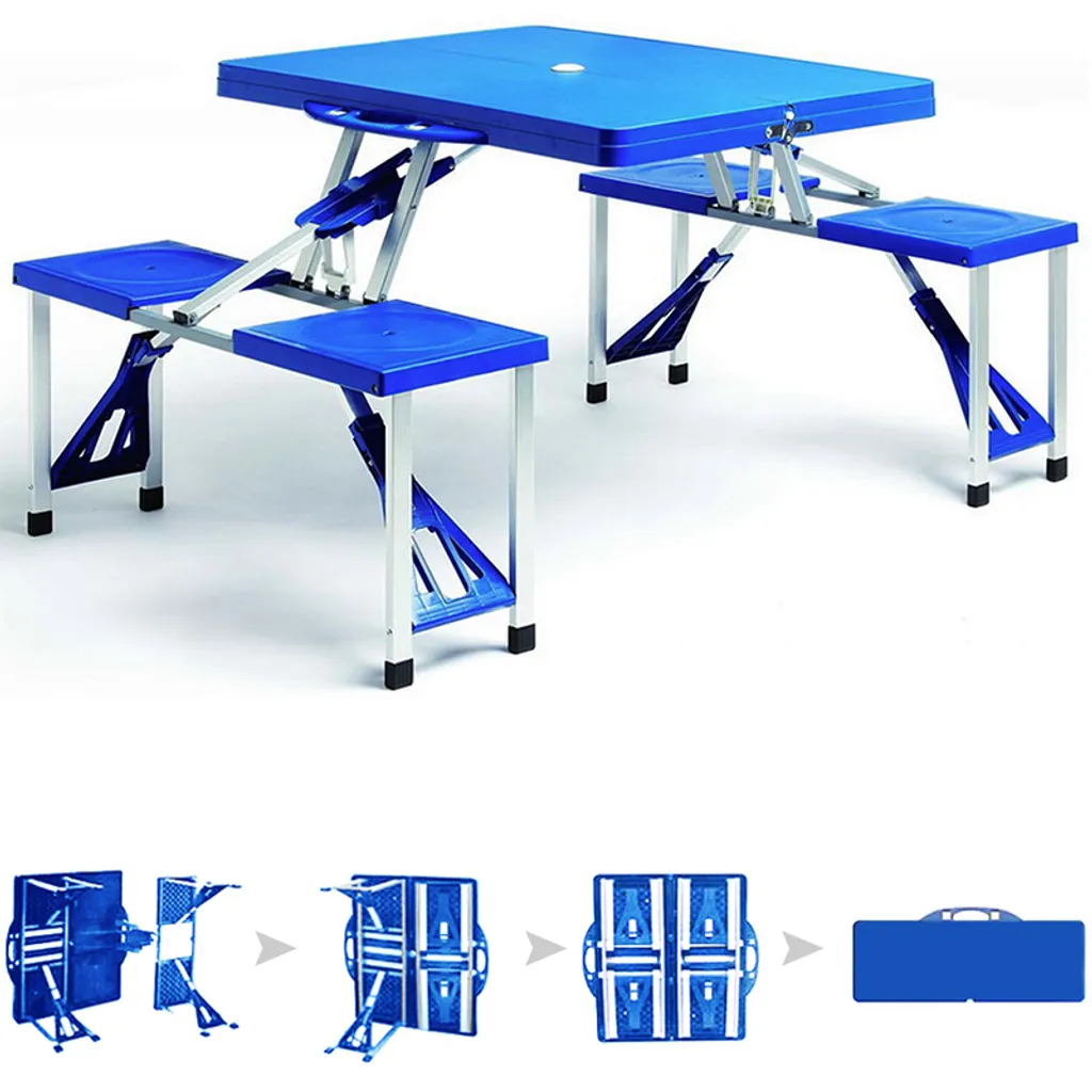 Praktischer Picknicktisch mit 4 Sitzen, Sonnenschirmhalter und Kofferfunktion!