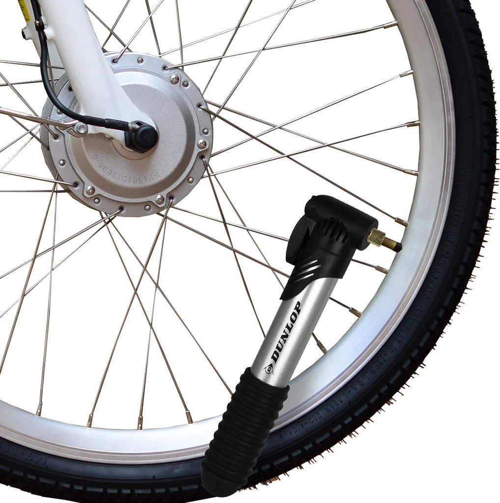 Diese kleine Fahrradpumpe von Dunlop ist universell einsetzbar und dank der kleinen Größe auch ideal für den mobilen Einsatz. Zusätzlich erhalten Sie drei verschiedene Adapter. Damit ist das Aufpumpen von Fahrradreifen, Fußbällen, Schwimmspielsachen u.v.m. ein Kinderspiel. Dank des Clipverschlusses haben Sie keinen Druckverlust beim Befestigen des Anschusses am Ventil. Die kompakte Größe, das geringe Gewicht, die drei Adapter und die beiden Halterungen für das Fahrrad, machen es zu einem idealen Begleiter.