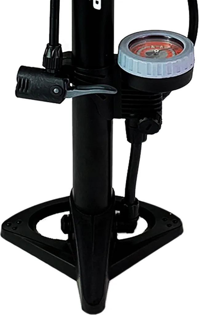 Diese Standpumpe mit analogem Manometer kann sowohl für Reifen mit französischen Ventilen (Schrader und Presta) als auch mit einem Dunlop-Ventil verwendet werden. Die Pumpe hat einen Doppelpumpenkopf, mit dem Sie jeden Reifen aufpumpen können. Die Pumpe wird mit zwei Aufsätzen geliefert, so dass Sie problemlos Autoreifen, Fußbälle und Luftmatratzen aufpumpen können.