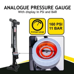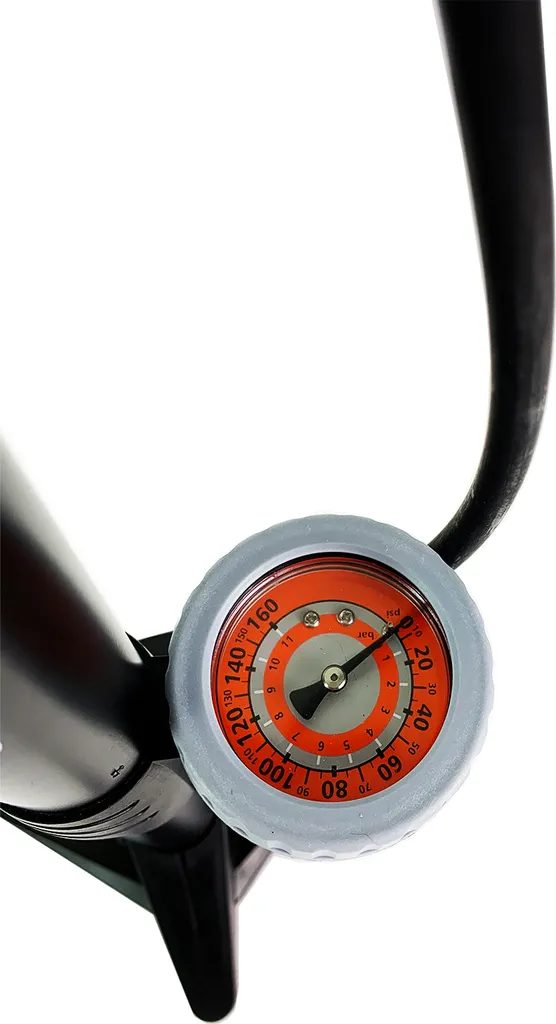 Das analoge Manometer zeigt Ihnen genau an, wie weit Ihr Reifen, Ball oder Luftbett aufgepumpt ist. Die Pumpe kann bis zu 160 PSI oder 11 bar aufpumpen. Praktisch, wenn Sie z. B. Radfahren, Mountainbiken oder Wartungsarbeiten an Ihrem Auto durchfĂĽhren.