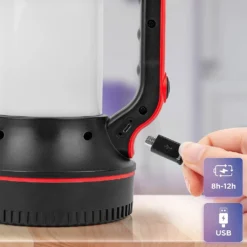 - ÜBER DAS PRODUKT: Die Duronic RL74 Lampe ist eine 2-in-1 Taschenlampe mit einem fokussierten Strahler nach vorn und einer diffusen Laterne im Gehäuse. Der Akku hat eine Kapazität von 10.000 mAh und reicht für bis zu 17 Stunden Leuchtdauer. Die Lampe hat eine Leuchtkraft von 320 Lumen und hat drei verschiedene Leuchtmodi. Über das mitgelieferte USB-Kabel kann der interne Akku wieder aufgeladen werden.