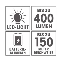 Ihr idealer Begleiter im Alltag und in jeder Lebenslage: Die EASYmaxx Power-Funktionstaschenlampe leuchtet bis zu 40 x heller als herkömmliche Taschenlampen und erzeugt einen strahlend hellen Lichtkegel. Die Lichtkegel-Intensität ist schnell und stufenlos einstellbar und daher für jeden Bedarf geeignet. Das Licht der handlichen, kompakten und sehr robusten Taschenlampe ist sogar aus weiter Entfernung klar sichtbar – ideal auch bei Ausflügen in einsamere Gebiete. Darüber hinaus verfügt die EASYmaxx Power-Funktionstaschenlampe über 5 Leuchtmodi. Hier können Sie zwischen leichter, mittlerer oder starker Lichtintensität wählen und im Notfall sogar ein SOS-Signal senden. Eine weitere Besonderheit der EASYmaxx Power-Funktionstaschenlampe ist die Schocklicht-Funktion: Diese speziell für Ihre Sicherheit entwickelte Einstellung hält durch extrem blendendes und blinkendes Licht unerwünschte Personen fern. Die EASYmaxx Power-Funktionstaschenlampe bietet Ihnen höchste Lichtqualität für alle Fälle!