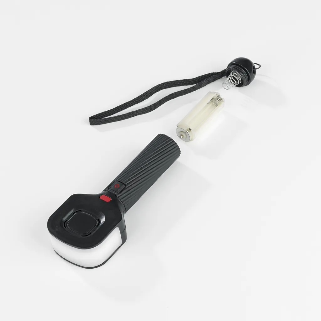 - Hinweise: Das Produkt ist zur Verwendung als Taschenlampe geeignet und verfügt über 3 verschiedene Modi (enger Lichtkegel, breiter Lichtkegel (180°), Blinken mit Alarm).