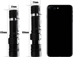 - Superhelle Taschenlampe: Sie verwendet eine hocheffiziente 10W T6 LED, die Strahllänge der Taschenlampe kann 500 Meter erreichen, die Taschenlampengröße beträgt 12,5 x 2,7 x 2,2 cm und wiegt nur 140 g (einschließlich Batterie). Daher ist es eine sehr tragbare EDC-Taschenlampe.