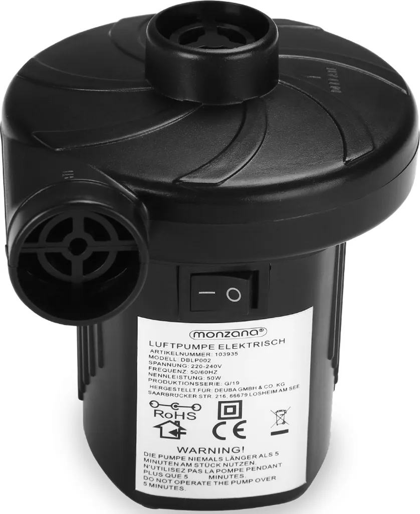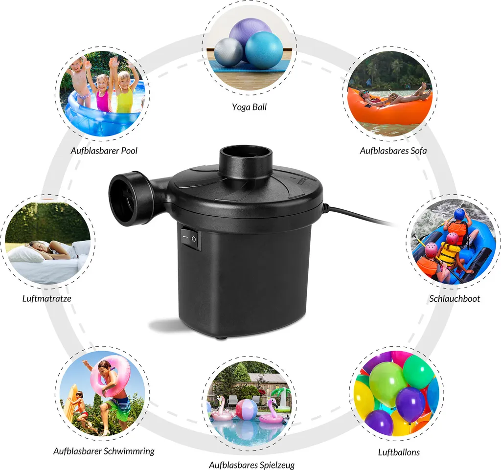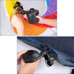 Pumpen Sie schnell und ohne großen Kraftaufwand Ihr Schwimmtier oder Planschbecken auf. Die Pumpe hat einen Ein- und Ausschalter am Gerät und lässt sich so leicht bedienen.