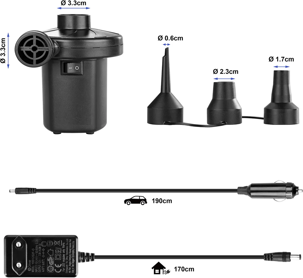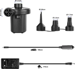 Zum Einsatz der Luftpumpe brauchen Sie lediglich einen 12 Volt Anschluss. Für den Anschluss an die Netzsteckdose gibt es ein 230 V Netzteil mit Kabel. Mit der Pumpe können Sie sowohl auf- als auch abpumpen.