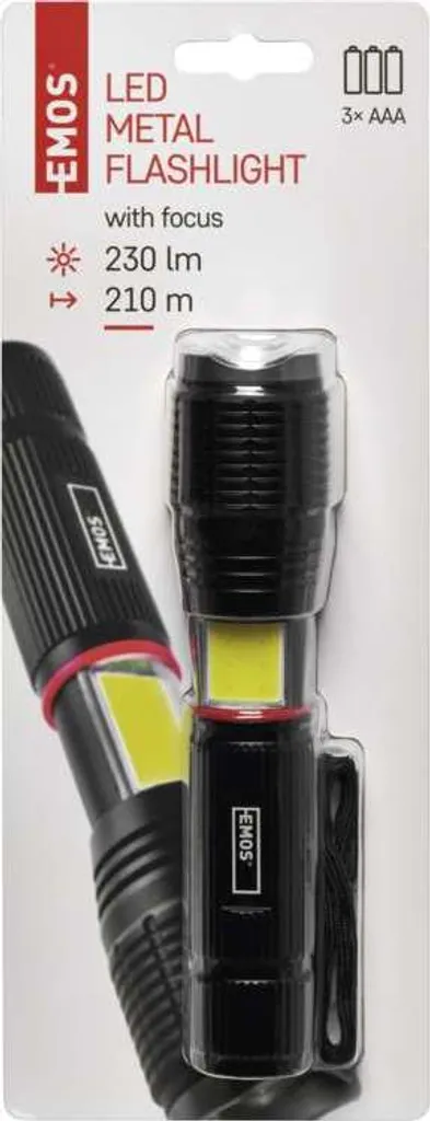 reichweite: 5 W LED 100% – 210 m, 5 W LED 50% – 155 m, 3 W COB LED – 20 m