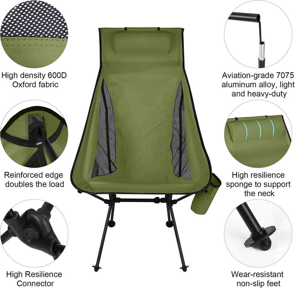 Strapazierfähig und langlebig: ein campingstuhl faltbar wiegt nur 1,3 kg, die bis zu 330 Pfund/150 kg halten kann. Der Sitz ist aus Ripstop-Nylon-Sitz und der Rahmen ist aus korrosionsbeständiger Aluminiumlegierung Rahmen gemacht. Beides sorgt für ausgezeichnete Stabilität und Langlebigkeit und kann nicht leicht verformt werden.