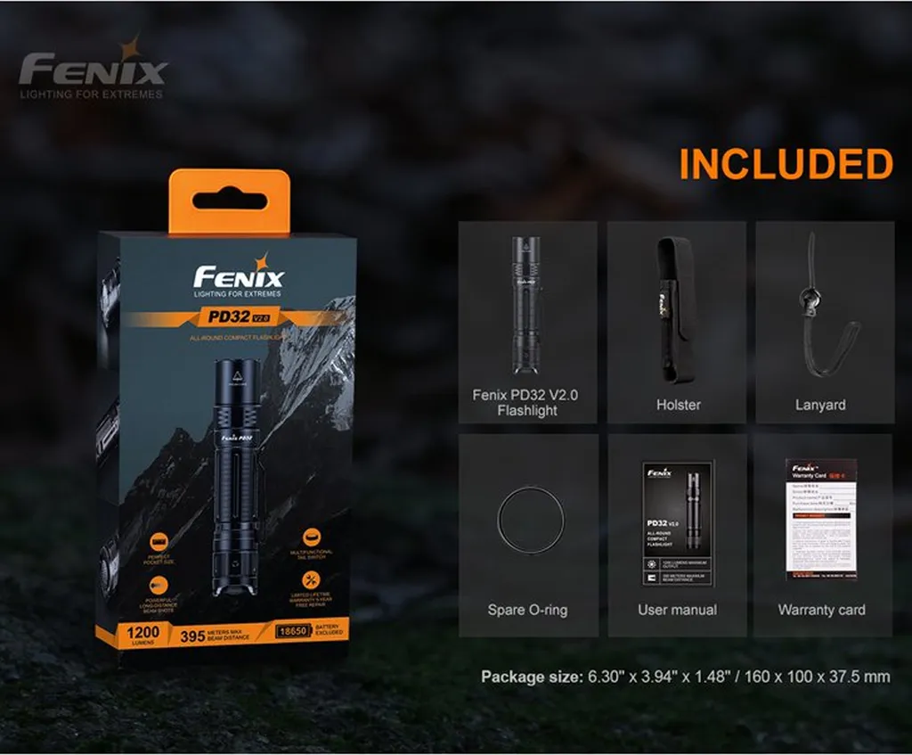 Fenix PD32 V2.0 Taschenlampe, Lanyard, Holster, Ersatz-O-Ring