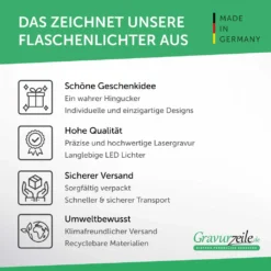 Eigenschaften Flaschenlicht mit LED-Lichterkette und Gravur „Freunde sind wie Sterne“