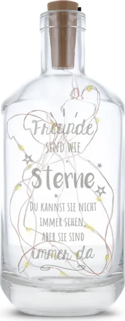 Eigenschaften Flaschenlicht mit LED-Lichterkette und Gravur „Freunde sind wie Sterne“