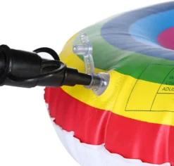 - Ein Satz von 3 Luftdüsen mit verschiedenen Durchmessern, mit denen Sie verschiedene Strandartikel schnell aufblasen können – von Bällen, Rädern bis hin zu großen Pontons oder Gartenpools.