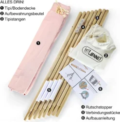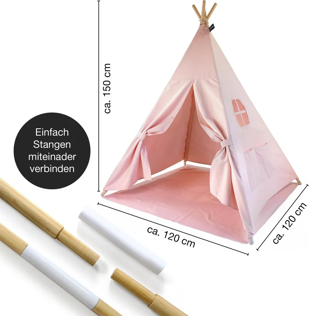 1x Tipi mit Fenster, inklusive Aufbewahrungsbeutel, Bodendecke, Rutschstopper, Aufbauset und Anleitung