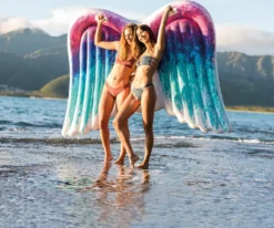 Die aufblasbare Luftmatratze im coolen Engelsflügel-Design sorgt für den ultimativen Badespaß am Pool oder im Meer.
