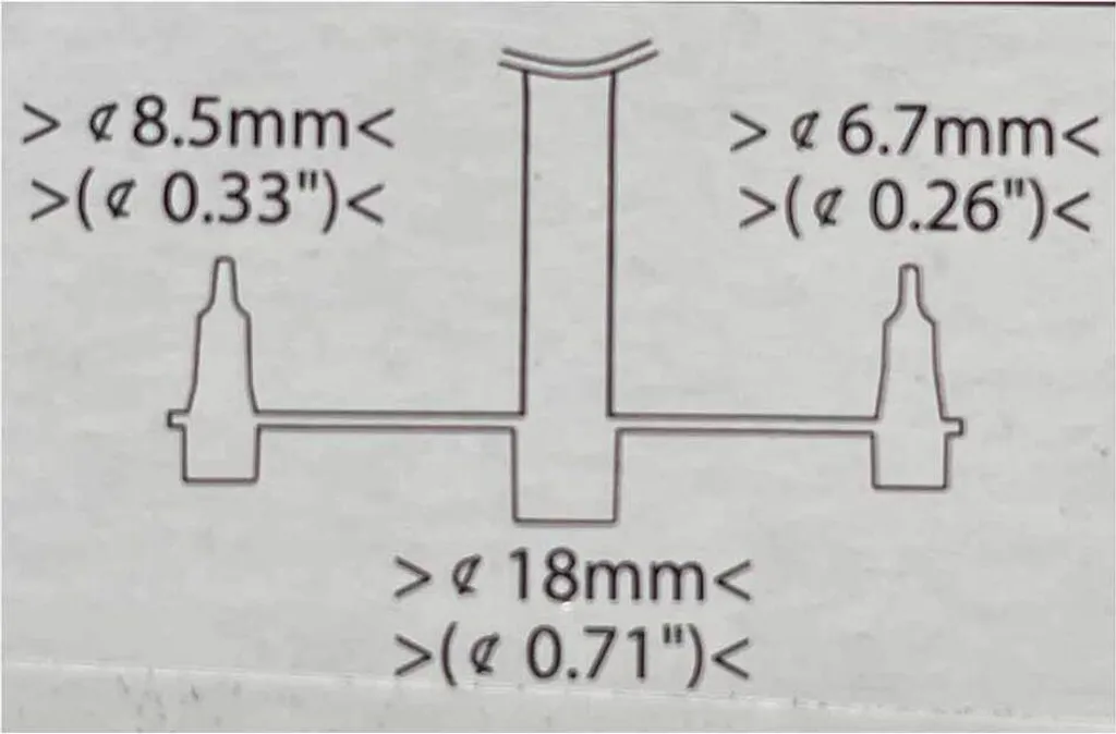 - Durchmesser AnschluĂźstĂĽcke: 6,7mm / 8,5mm / 18mm