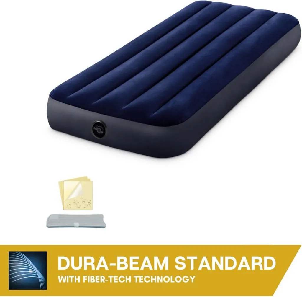 Lieferumfang: Ein Luftbett „Classic Downy“ in Jr. Twin Size (76x191x25cm) aus der Intex Dura-Beam Standard Serie mit Fiber-Tech Technologie für hohe Stabilität, angenehmen Liegekomfort und Langlebigkeit.