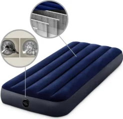 Dura-Beam Innenstruktur, für optimale Unterstützung und StabilitätWellende Oberfläche für zusätzlichen KomfortFür den Innen- und AußenbereichLeichtgewichtig und kompakt zu faltenDas Intex Classic Bett ist ein allround Luftbett, für zuhause oder unterwegs. Es ist aus starkem und strapazierfähigem Material hergestellt, aber ist gleichzeitig leicht von Gewicht und kompakt faltbar. Die Dura-Beam Innenstruktur liefert das Bett zusätzlichen Komfort und Stabilität und die veloursartige Oberfläche ist angenehm weich. Über das extra große 2-in-1 Ventil ist das Luftbett mit einer elektrischen Pumpe oder mit einer Hand- oder Fußpumpe (nicht im Lieferumfang) schnell aufzublasen. Auf diese Weise kreieren Sie in wenigen Minuten einen schönen Schlafplatz am Campingplatz, an der Übernachtungsadresse oder für Ihre Gäste.Größe: 76 x 191 cm*Höhe: 25 cmGewicht: 2 kgGeflockte LiegeflächeFarbe blau
