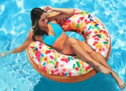 Könnte es an einem heißen Sommertag etwas Herrlicheres geben, als in einem aufblasbaren Badeanzug auf dem Wasser herumzutreiben? Mit einem aufblasbaren Badespielzeug können Sie genau das tun. Dieser Badering ist als Donut mit Streuseln konzipiert und kann von Kindern und Erwachsenen jederzeit verwendet werden – von der Poolparty bis zum Familienurlaub.