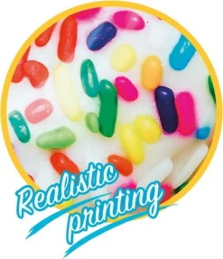 – Farbe: Weiß und Pink mit bunten Streuseln in Regenbogenfarben