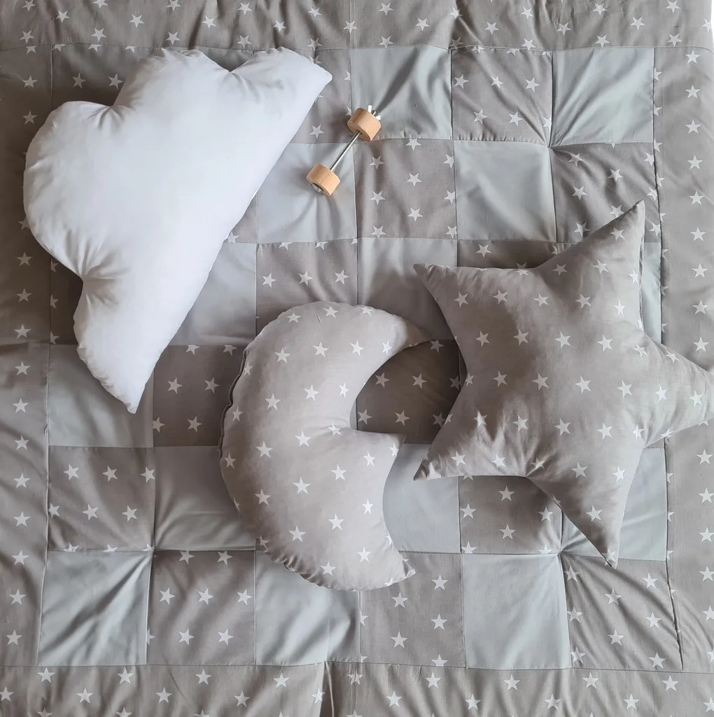 - 3 Kissen: Wolke, Stern, Mond. Antiallergische Silikonballfüllung. Kissen- Grau,Weiß